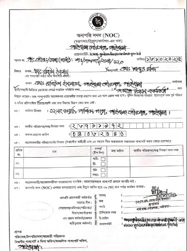 জনাব মোঃ রবিউল ইসলাম, সমাজ উন্নয়ন কর্মকর্তা’র অনাপত্তিপত্র