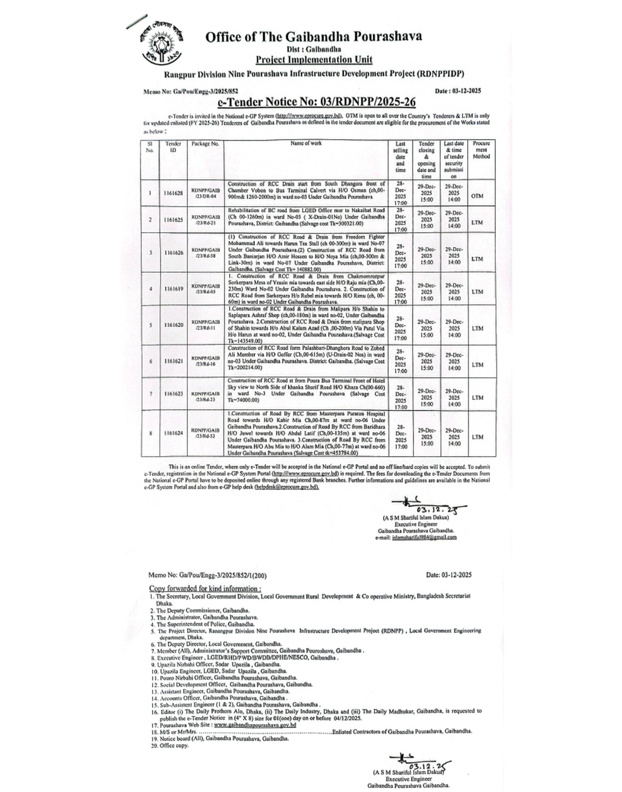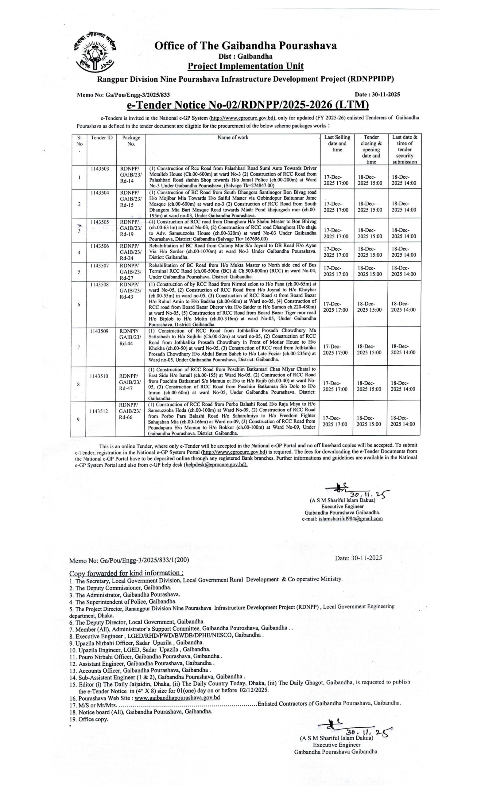 ই-জিপি টেন্ডার নোটিশ